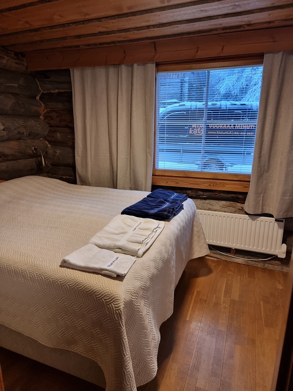 Makuuhuone ja nukkumaparvi tarjoavat hyvät tilat ja toimivuutta lomaan. Kuuden makuupaikan lisäksi saatavilla on lapsia varten matkasänky, syöttötuoli sekä potta. Pyykkihuoltoon on käytössä pyykinpesukone ja kuivauskaappi. Ulkovarastossa on tilaa suksien säilytykseen.